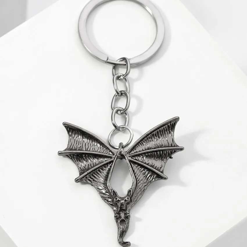 Porte-clés chauve-souris gothique en métal argenté pour un style audacieux et mystérieux