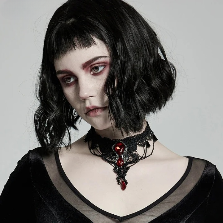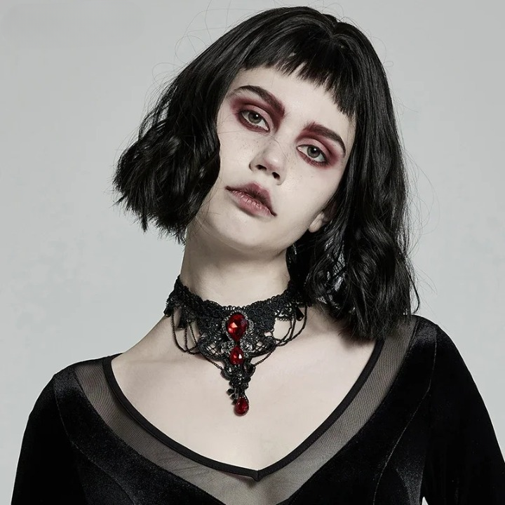 Collier Tour de Cou Gothique Pierre Rouge : Une pièce pratique et versatile