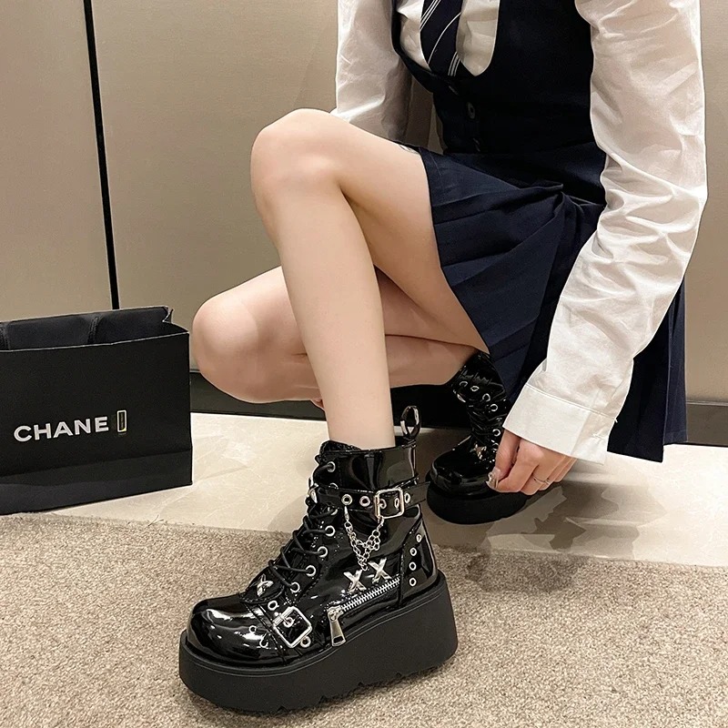 Cette paire de chaussures au design audacieux est une déclaration de style, un appel à ceux qui osent se démarquer. L’obscurité et l’originalité se mêlent dans ce produit, évoquant l’esthétique gothique punk.