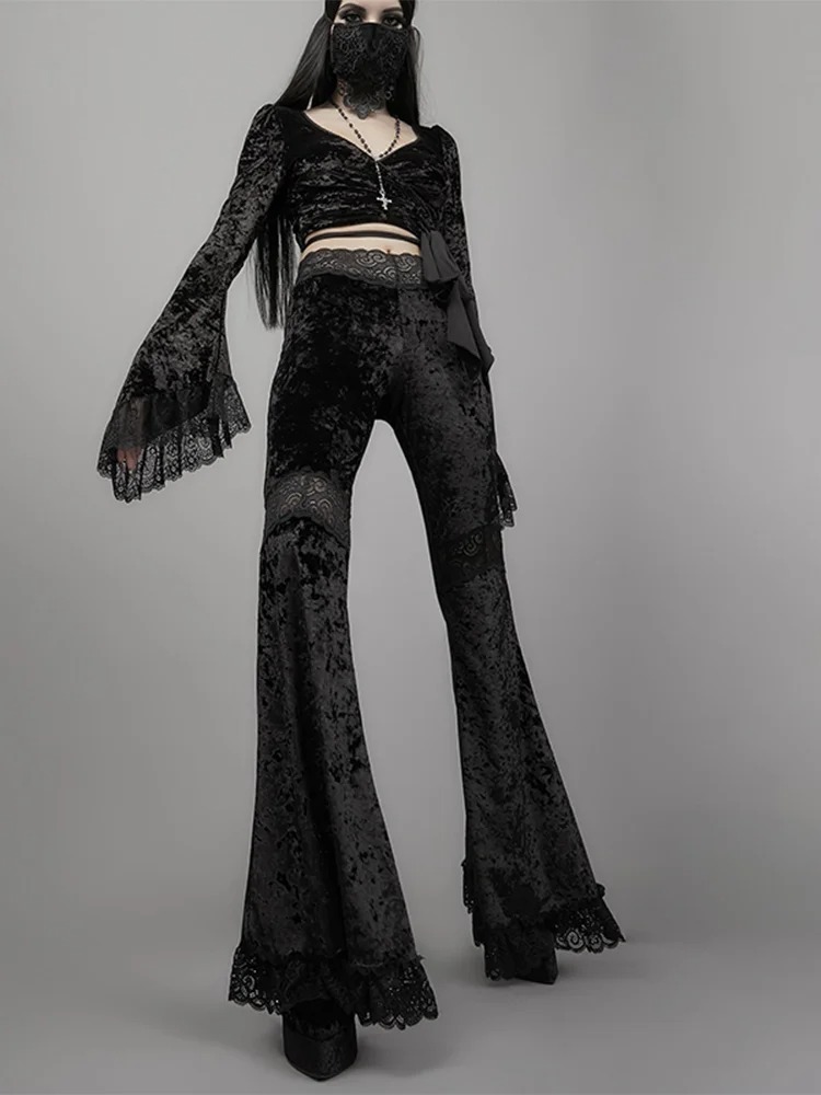 Pantalon Gothique Évasé avec Dentelle : Confort Gothique sans Compromis
